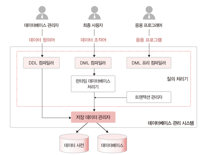 데이터베이스 관리와 사용자의 데이터 처리 요구 수행