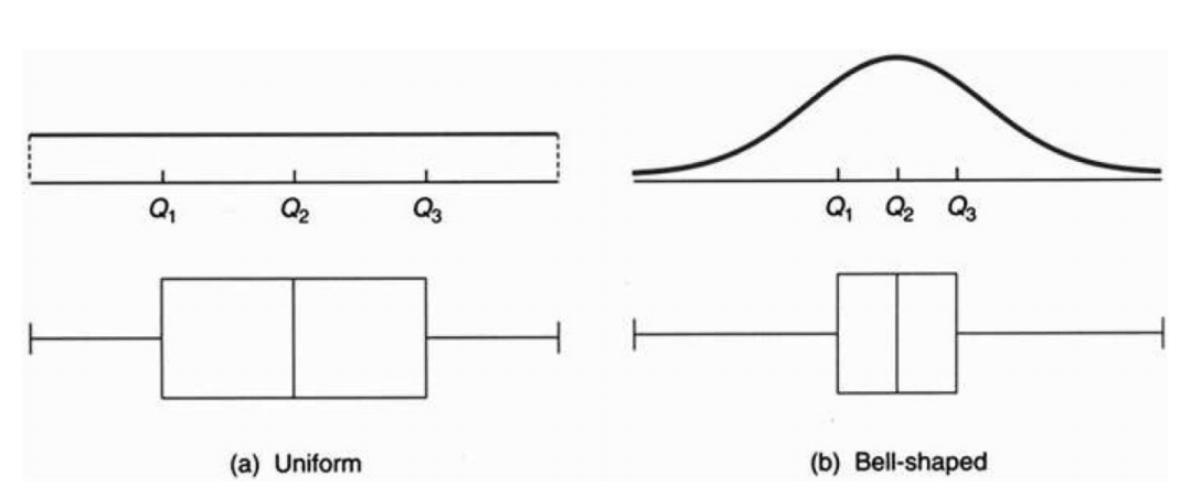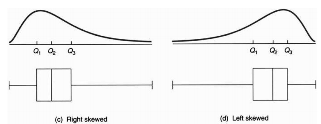 중앙값, 대칭성, 분산, 왜도, 이상치 에 대한 정보를 제공