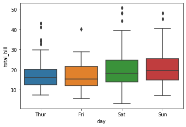 sns.boxplot(data=tips, x="day", y="total_bill")