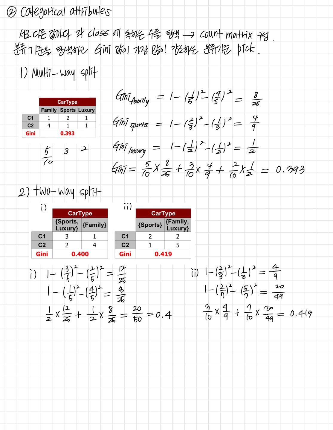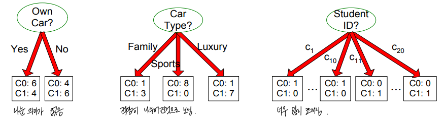 | attribute type 에 따라 | 분리의 수에 따라 |