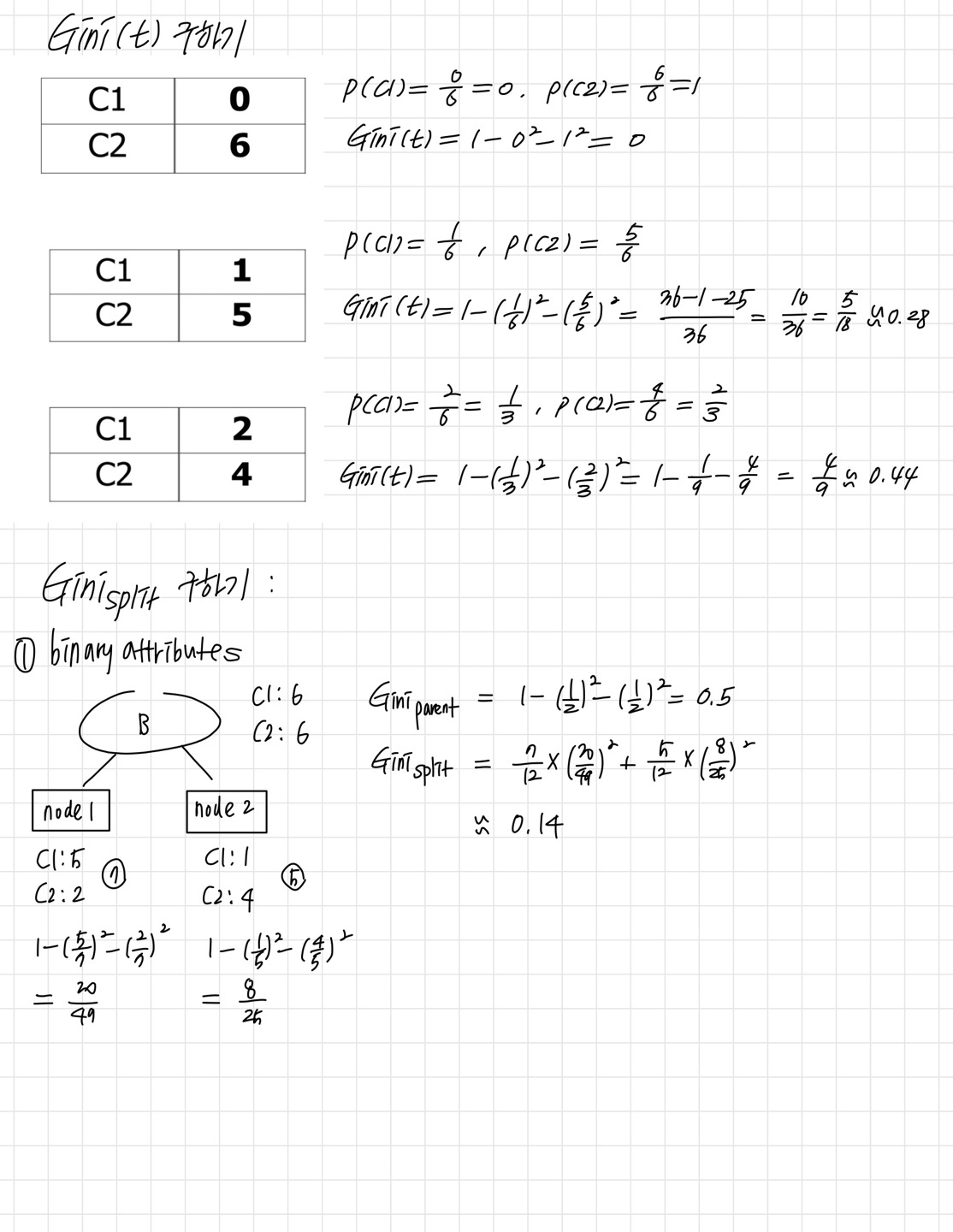 만약 Dt 에 속한 데이터가 둘 이상의 클래스에 속한다면, 데이터의 다른 feature 이용해서 더 작은 부분집합으로 분리