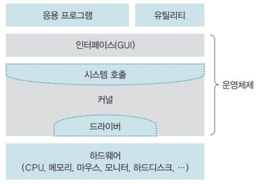 | 하드웨어 인터페이스 제공 | - 사용자가 복잡한 과정 없이 다양한 장치를 사용할 수 있도록 하는 HW 인터페이스 제공 - 다양한 HW(메모리, 키보드, 마우스, CPU) 를 일관된 방법으로 사용할 수 있게 지원 |
