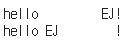 print('hello %-10s!'%name)